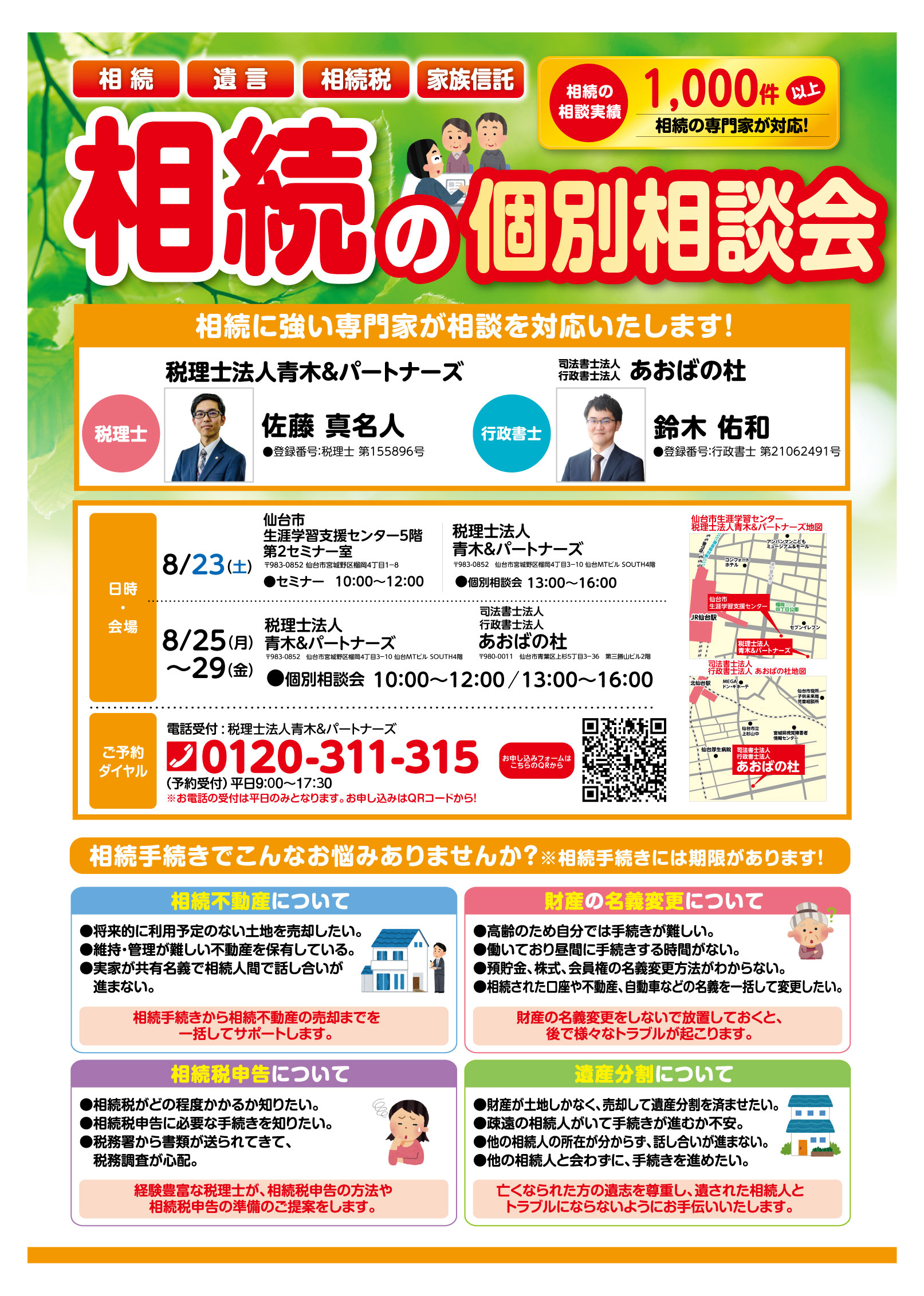 ◇8/23(土) 仙台開催◇ 相続・遺言まるわかりセミナー開催のお知らせ